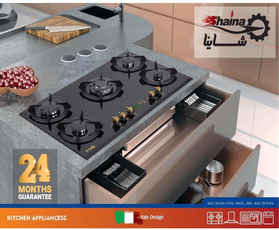 اجاق گاز صفحه ای شاینا 5 شعله با تایمر زماندارفول دیجیتال طلایی طرح دیفندی S82N۱۲٬۶۶۱٬۳۱۰ تومان