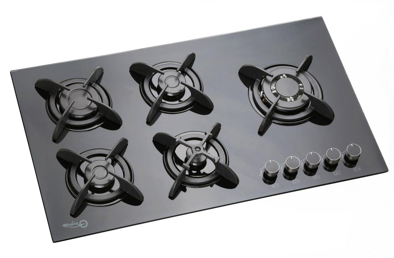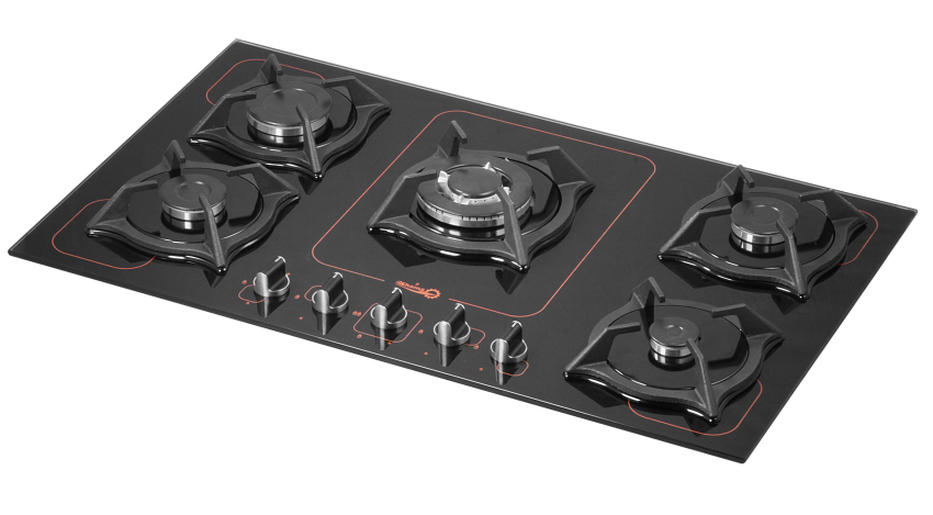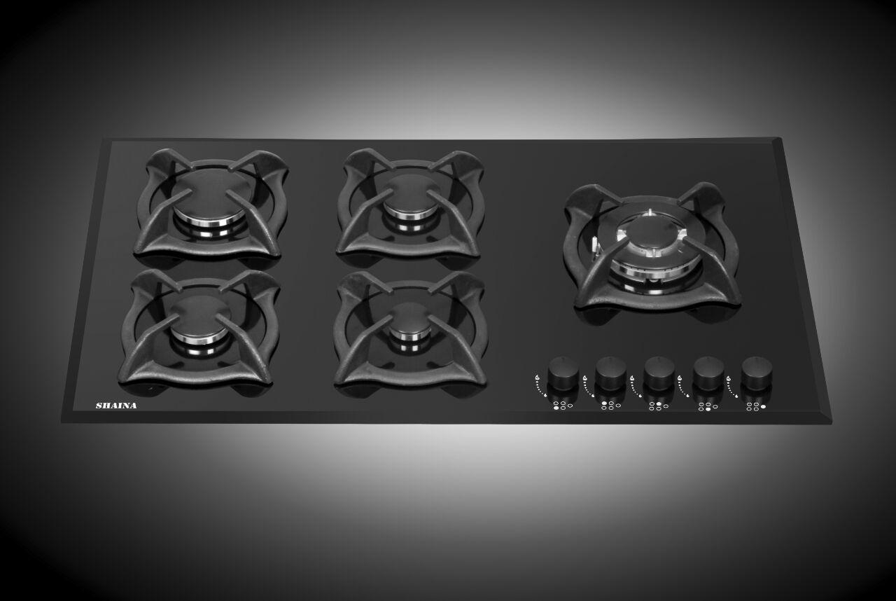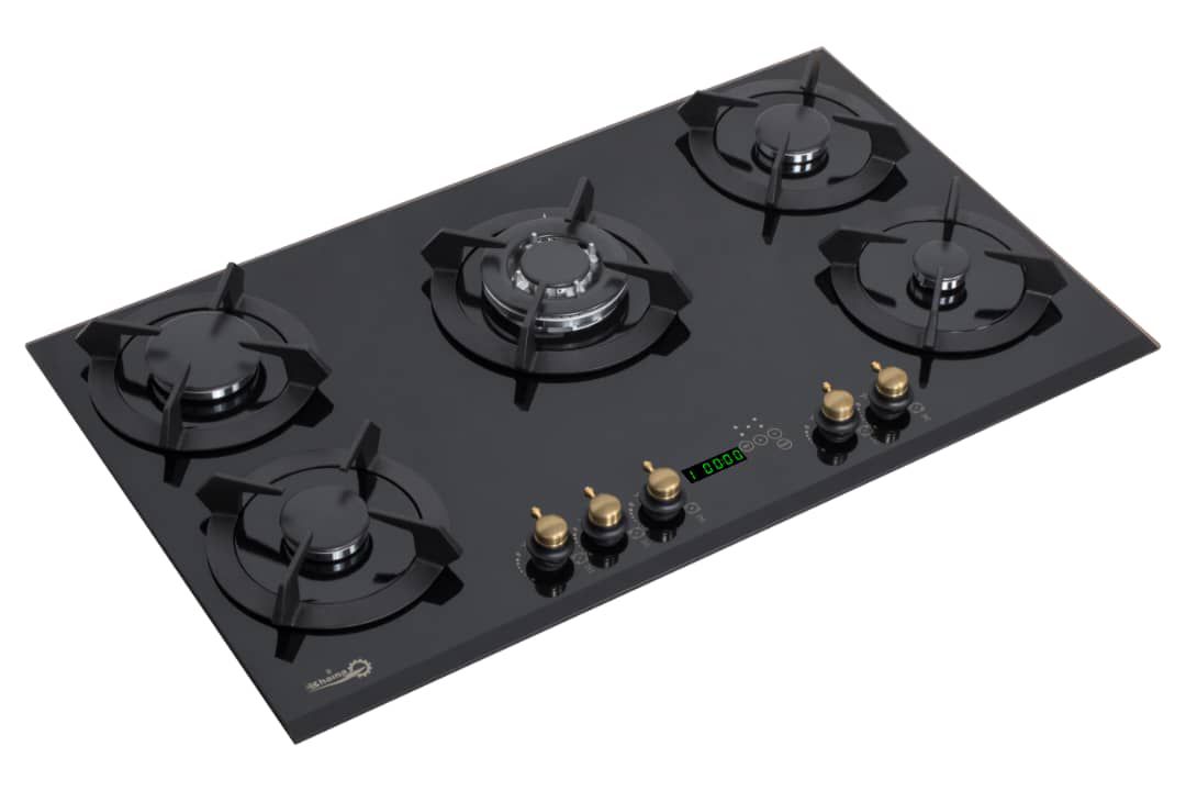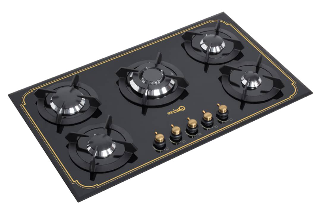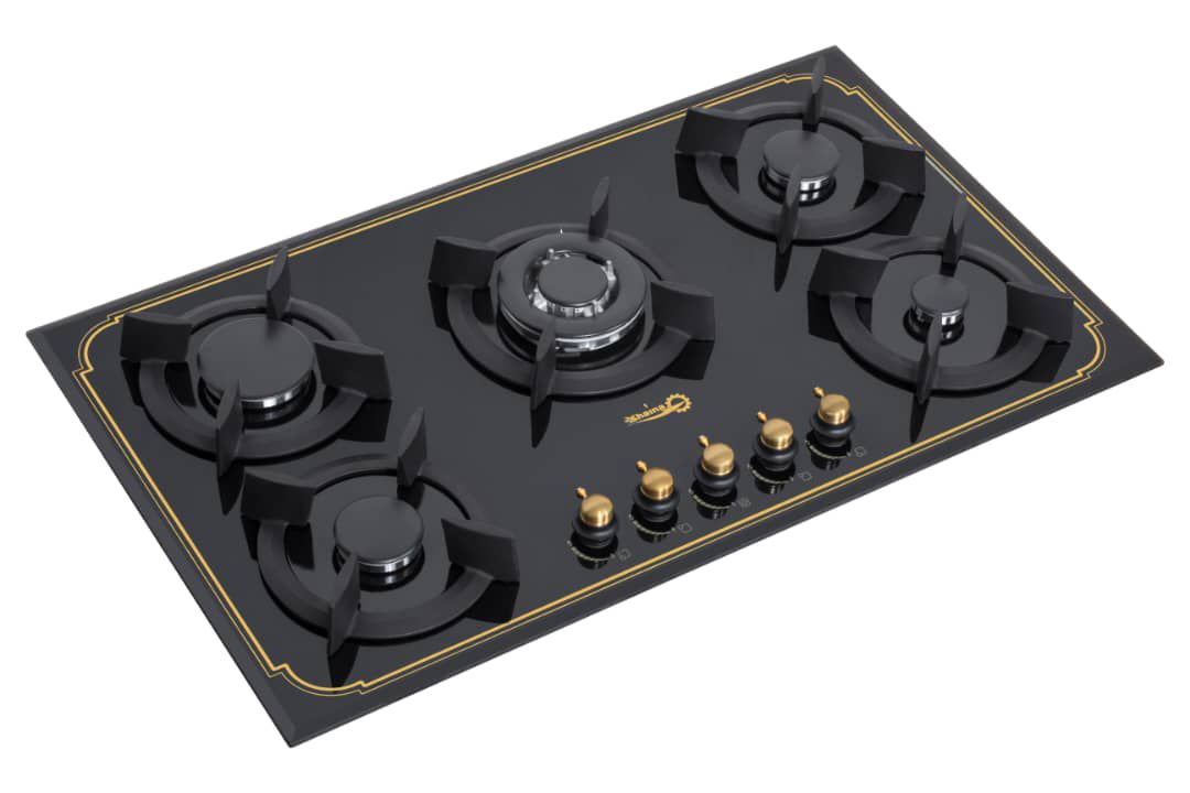 اجاق گاز صفحه ای شاینا پنچ شعله شیشه ای وسط مشکی قاب طلائی ولوم برنجی مدل S88۱۱٬۰۳۲٬۰۰۰ تومان